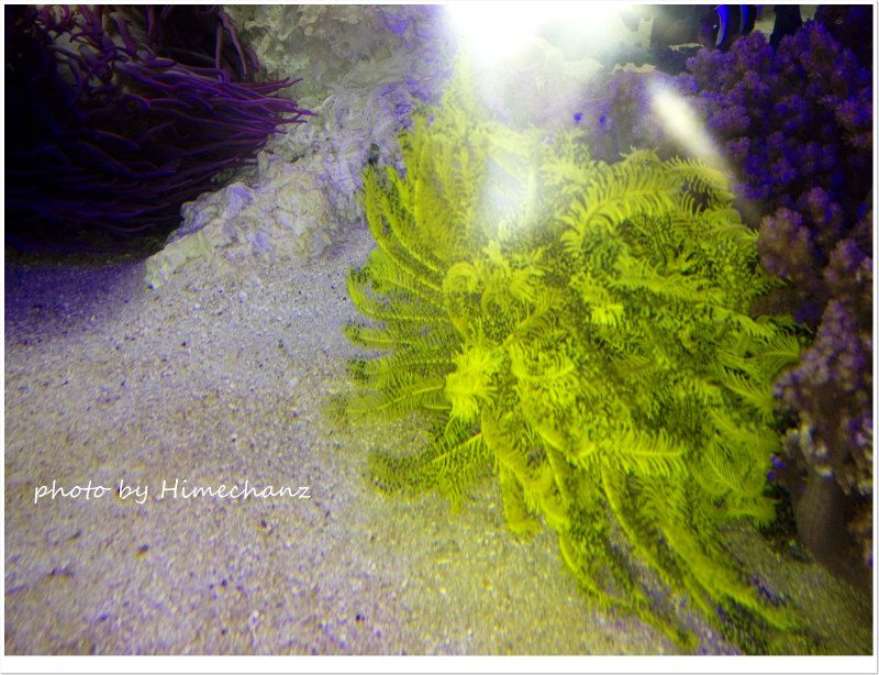 食事の前に目に止まったのが水槽。 内覧会の時にはまだ空の水槽でしたが、 キレイなお魚さん達が入っていました! みちゃこは、ウミシダを見つけて大興奮w