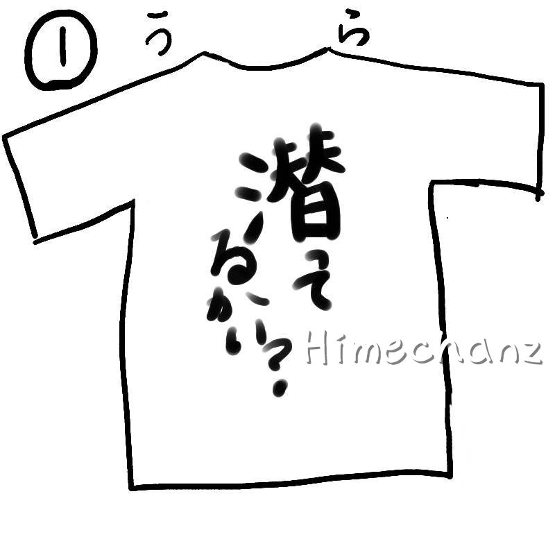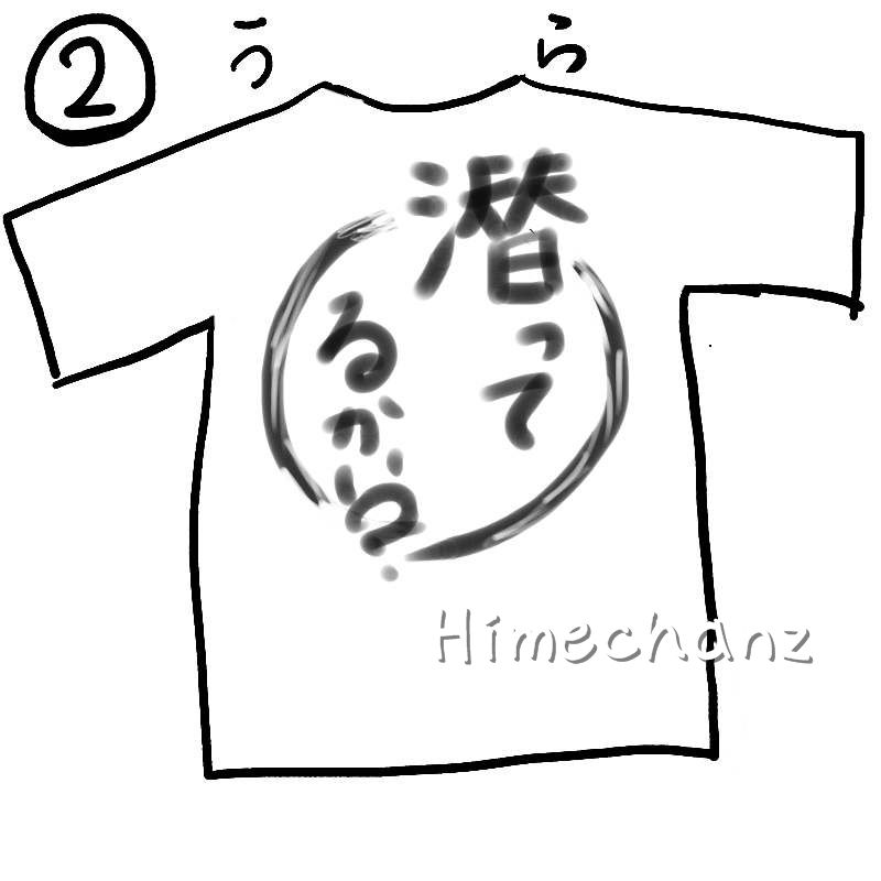 Tシャツ裏に大きく「潜ってるかい?」と記載。