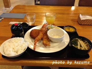 石垣牛のコロッケ、グルクンと車海老のフライが揃ったランチをいただきました。