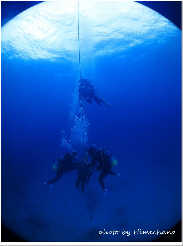 流れが強かったので潜降ロープで安全停止♪ photo by CANON PowerShot S100