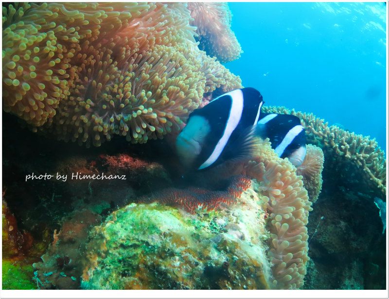 たまごを大事に大事にしてたクマノミ親子 photo by CANON PowerShot S100