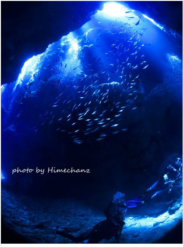 最高の晴天、潮色、キレイな生き物たち、洞窟の光、極上のテラピー、