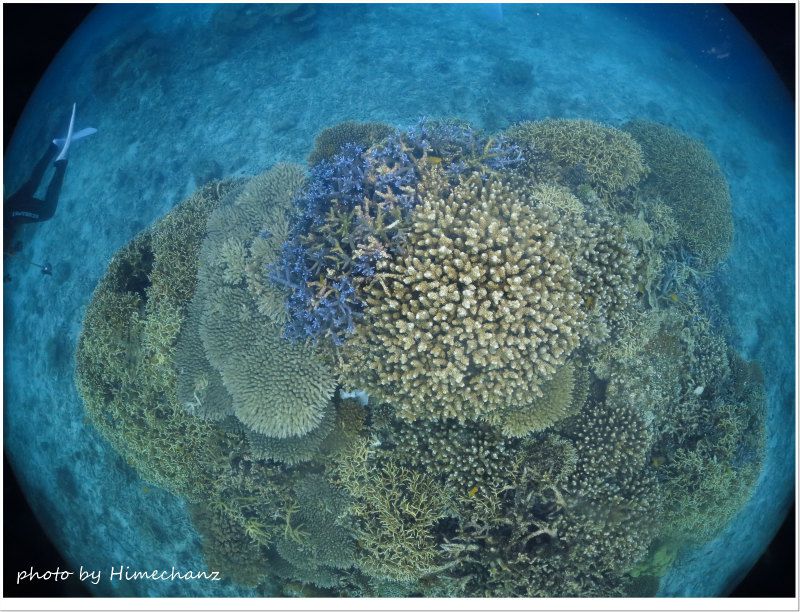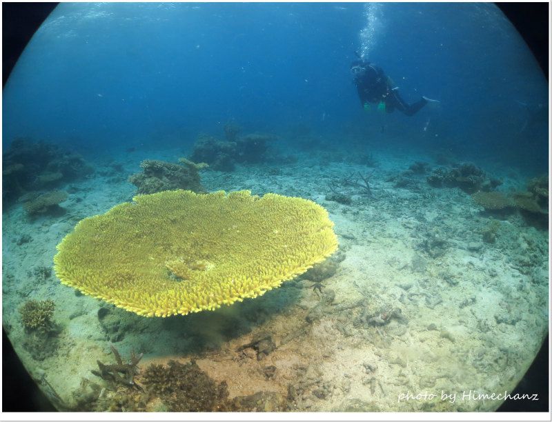 大きなテーブルサンゴもすくすく育ってます♪ photo by CANON PowerShot S100