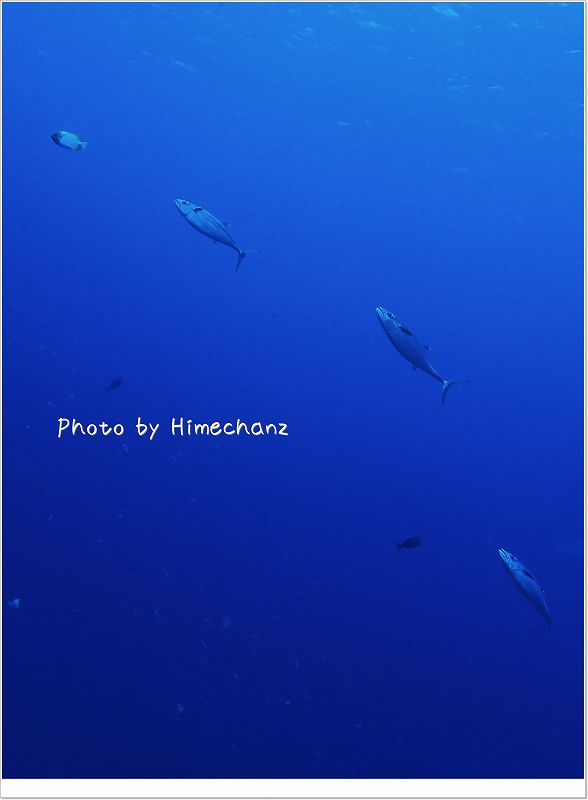 潜降を開始するとすぐに50cmほどのマグロ7匹が編隊をなして近づいて
