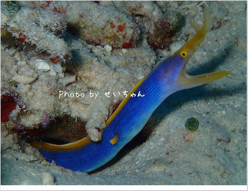 もはや竹富島の定番になりつつあるハナヒゲウツボちゃん♪ photo by Nikon D300