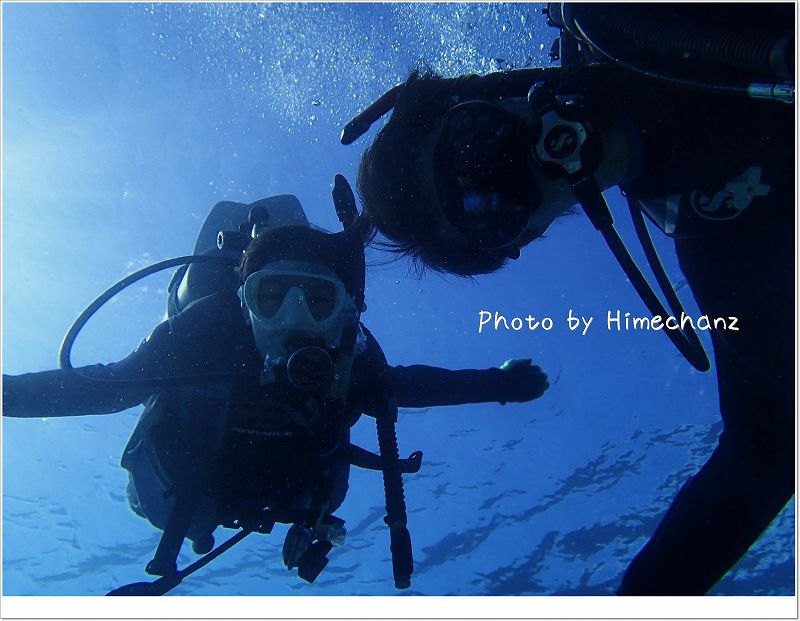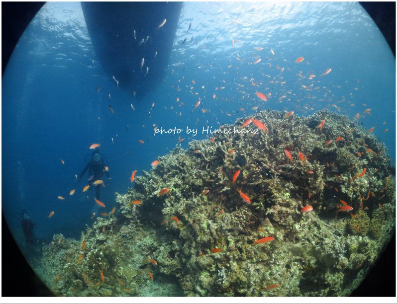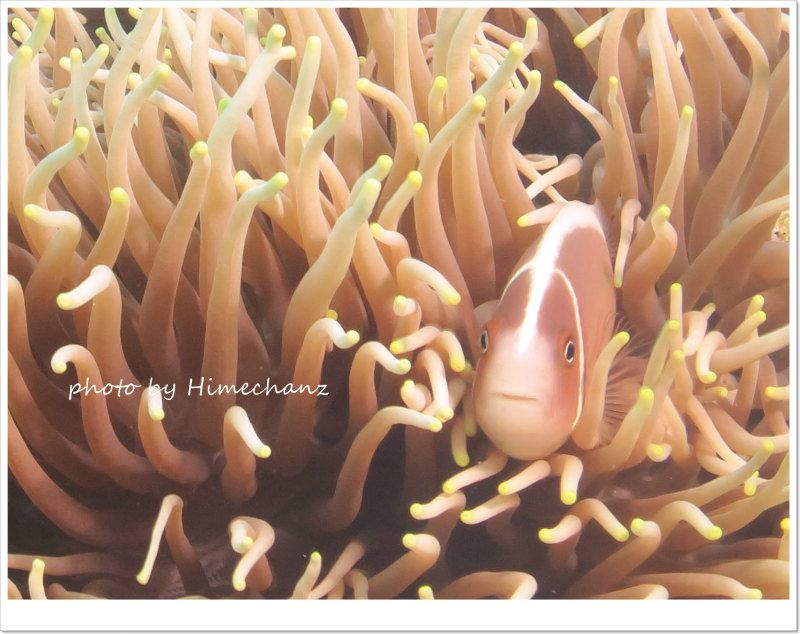 ↓上から見ると十字架に見えるクマノミにご挨拶したり