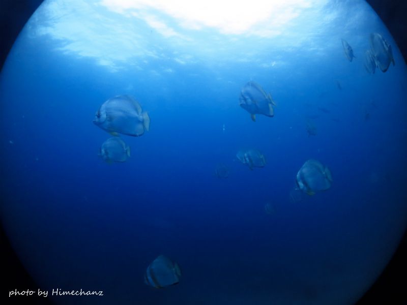 しばらくすると、アカククリやツバメウオの群れ、ツムブリの群れがわっさーときます!
