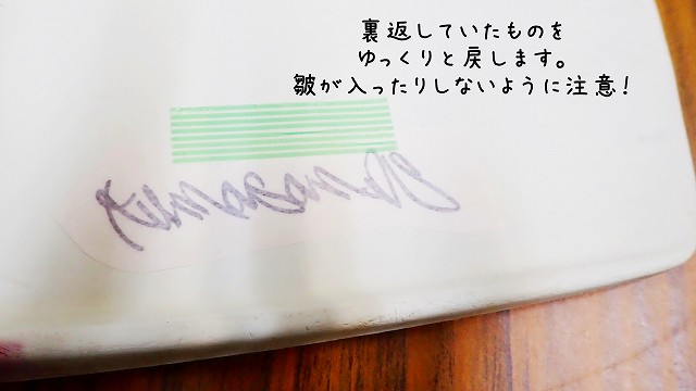 ステッカーが和紙側についていることを確認しながらゆっくりと。