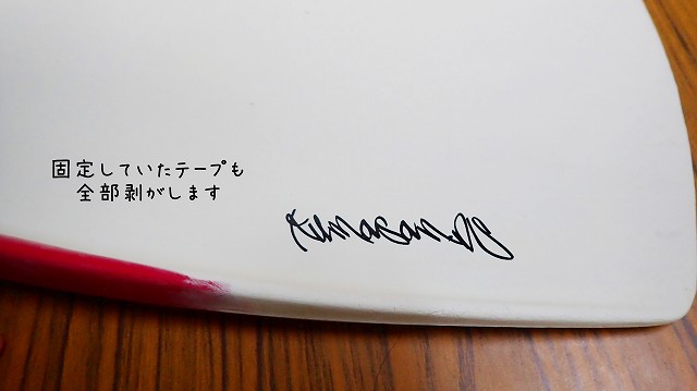 ①の貼り方と同じようにフィンの汚れを落とします。今回は除光液を使用しました。