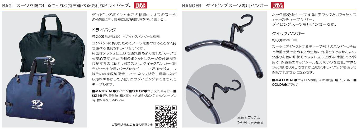 ・クイックハンガー:ドライスーツを傷めないために専用のハンガー。どこよりも一番スーツへの負担がないと思ってる。